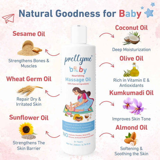 Nourishing Baby Massage Oil For Newborns With Natural Olive, Coconut & Almond Oil